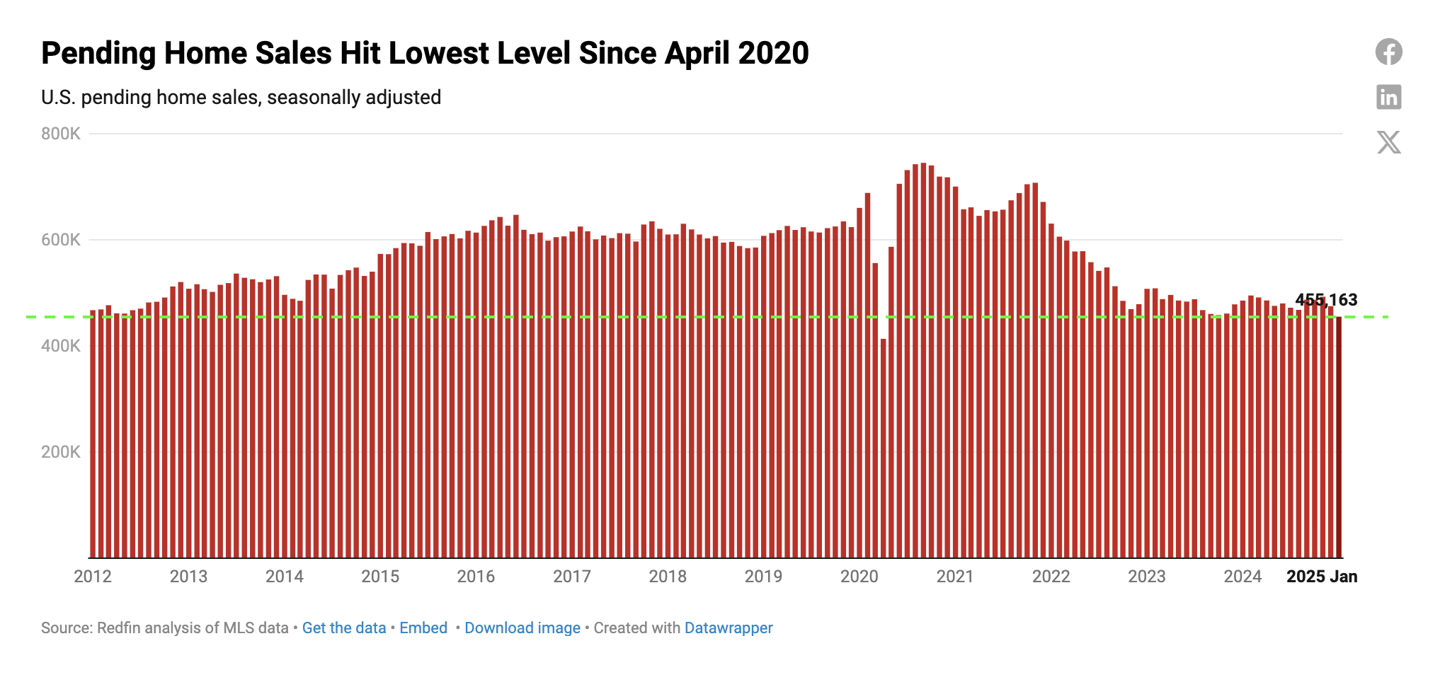 Theo báo cáo mới nhất của Redfin, số lượng nhà bán ra trong tháng 1 năm 2025 chạm mức thấp kỷ lục, chỉ cao hơn duy nhất tháng 4/2020 trong thời kỳ đại dịch COVID. Nhìn lại 4-5 năm trước, khi đa số mọi người lo sợ và giữ tiền mặt thủ thân, những người dám mạo hiểm đã chốt được những khoản vay thế chấp với lãi suất kịch sàn. Họ tận dụng thời điểm khủng hoảng để sở hữu tài sản với chi phí thấp hơn đáng kể so với mặt bằng chung. Vậy bạn nghĩ điều gì sẽ xảy ra năm nay? Và quan trọng hơn, bạn có dám hành động khi thị trường vẫn còn sợ hãi?